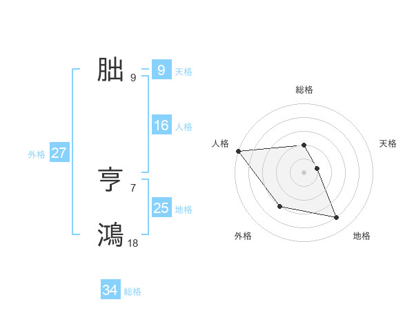 朏 亨鴻さんの総格は34画の2点!