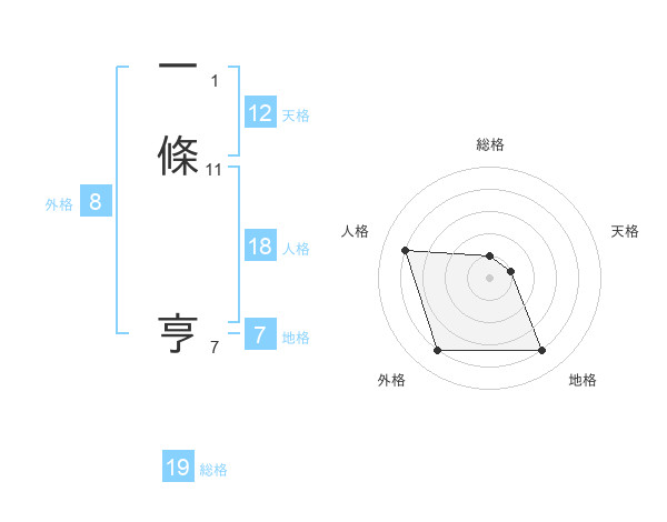 一條 亨さんの天格は12画の1点!