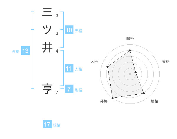 三ツ井 亨さんの総格は17画の4点!