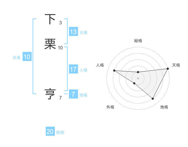 下栗 亨さんの天格は13画の5点!