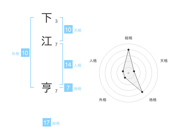 下江 亨さんの総格は17画の4点!
