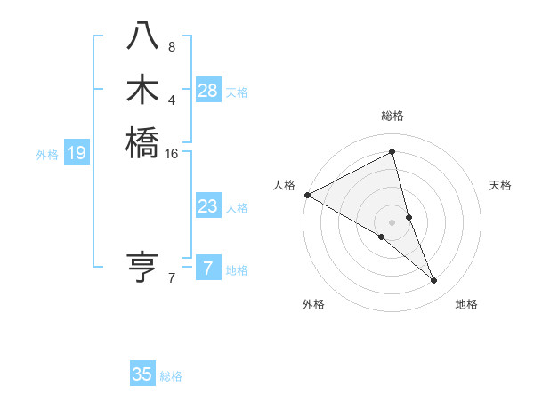 八木橋 亨さんの総格は35画の4点!