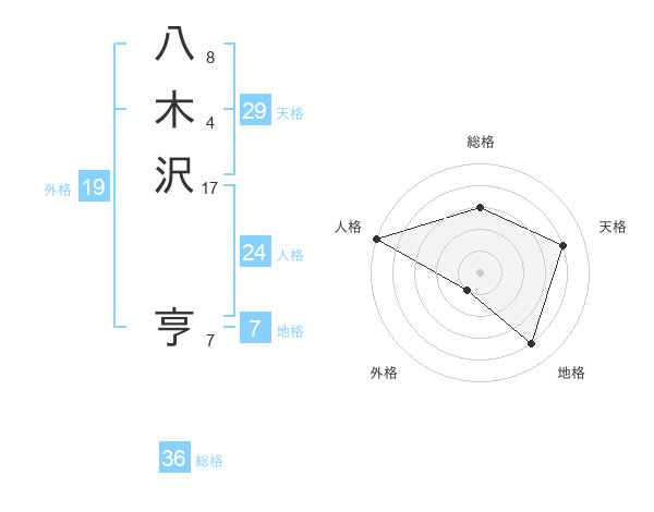 八木沢 亨さんの地格は7画の4点!