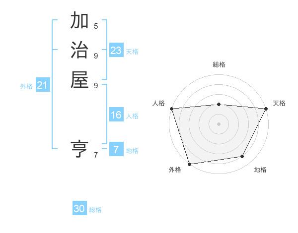 加治屋 亨さんの天格は23画の5点!