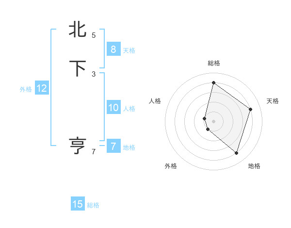 北下 亨さんの総格は15画の4点!
