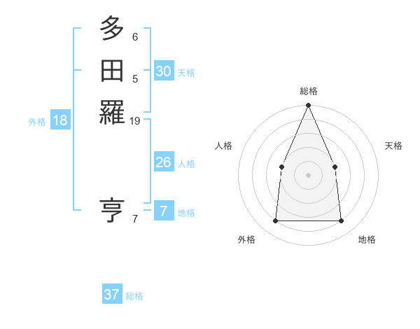 多田羅 亨さんを姓名の画数から五運を鑑定