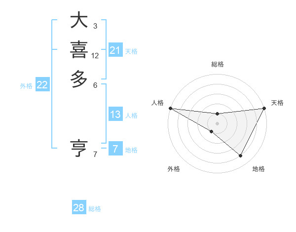大喜多 亨さんを姓名の画数から五運を鑑定