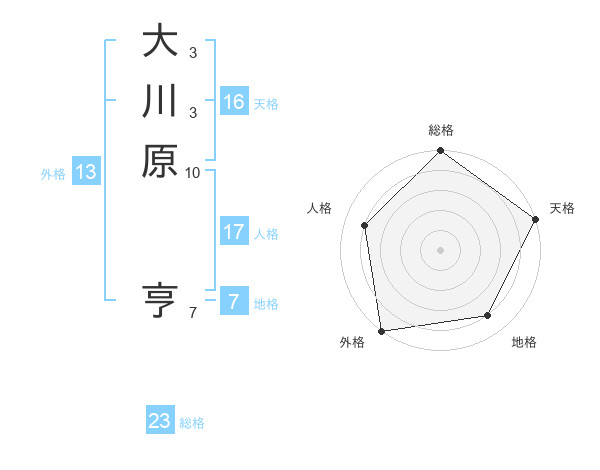 大川原 亨さんの外格は13画の5点!
