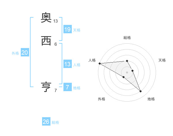 家系が持つ宿命的な運勢を表します。祖先から受け継いだ苗字ですので自分の力が及びません。家柄を象徴します。