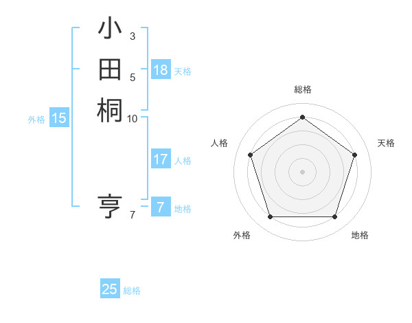 小田桐 亨さんの総格は25画の4点!
