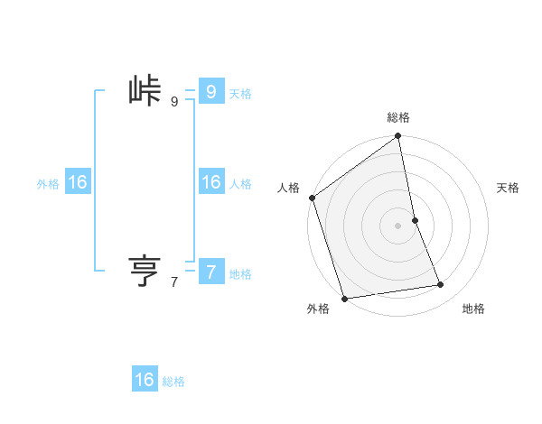 峠 亨さんの外格は16画の5点!