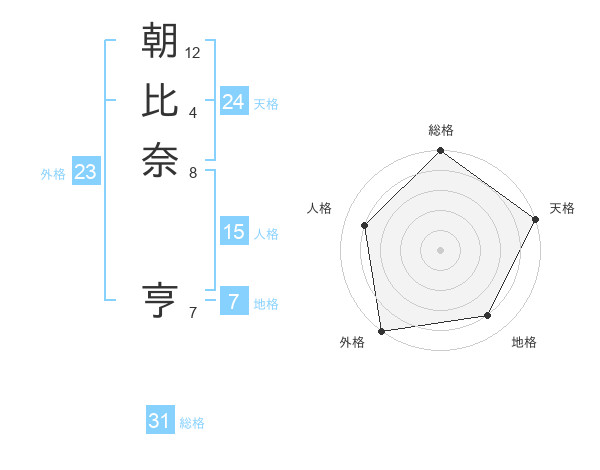 朝比奈 亨さんの総格は31画の5点!