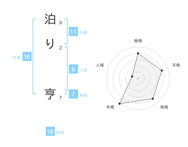 泊り 亨さんの総格は18画の4点!