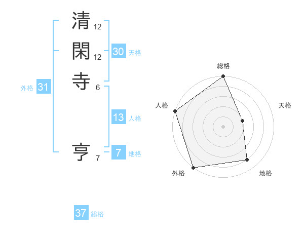 清閑寺 亨さんを姓名の画数から五運を鑑定
