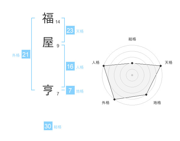 福屋 亨さんの外格は21画の5点!