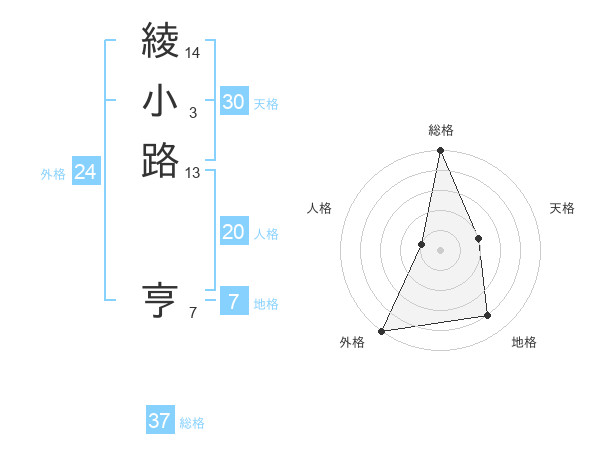 綾小路 亨さんを姓名の画数から五運を鑑定