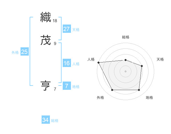 織茂 亨さんの総格は34画の2点!