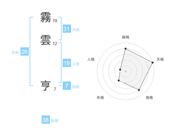 霧雲 亨さんを姓名の画数から五運を鑑定