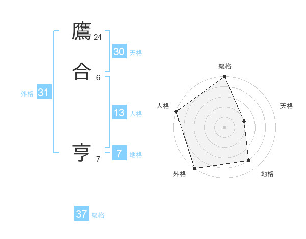 鷹合 亨さんの外格は31画の5点!