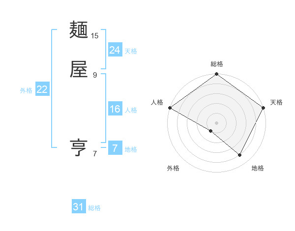 麺屋 亨さんの総格は31画の5点!