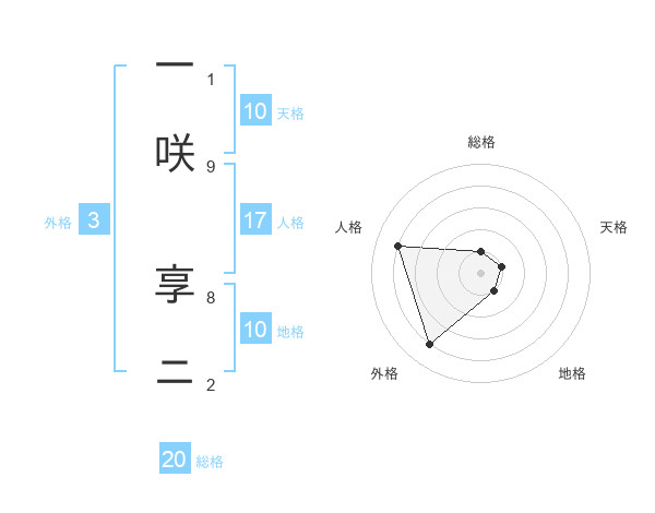 一咲 享ニさんの総格は20画の1点!