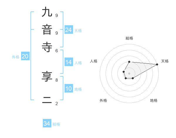 九音寺 享ニさんの総格は34画の2点!