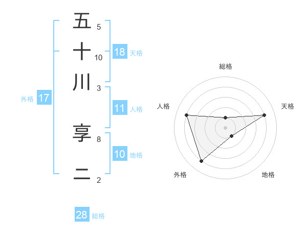 五十川 享ニさんを姓名の画数から五運を鑑定