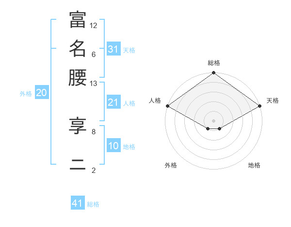富名腰 享ニさんを姓名の画数から五運を鑑定
