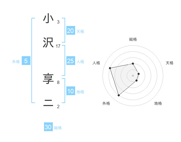 小沢 享ニさんの総格は30画の2点!