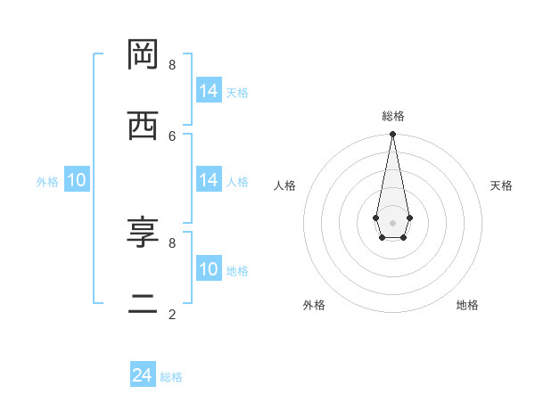 岡西 享ニさんの総格は24画の5点!
