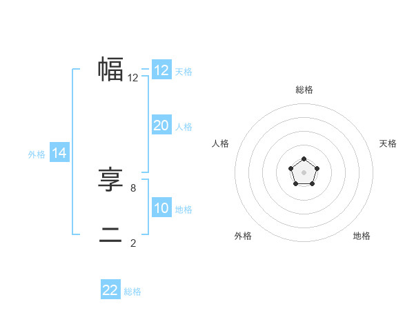 幅 享ニさんの総格は22画の1点!