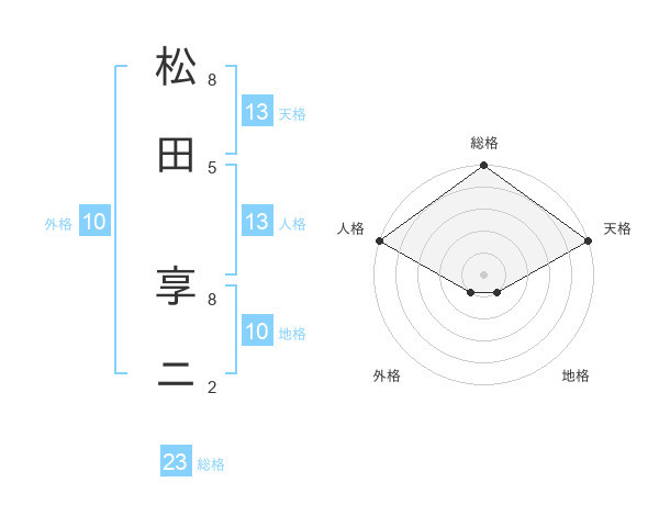 松田 享ニさんの天格は13画の5点!