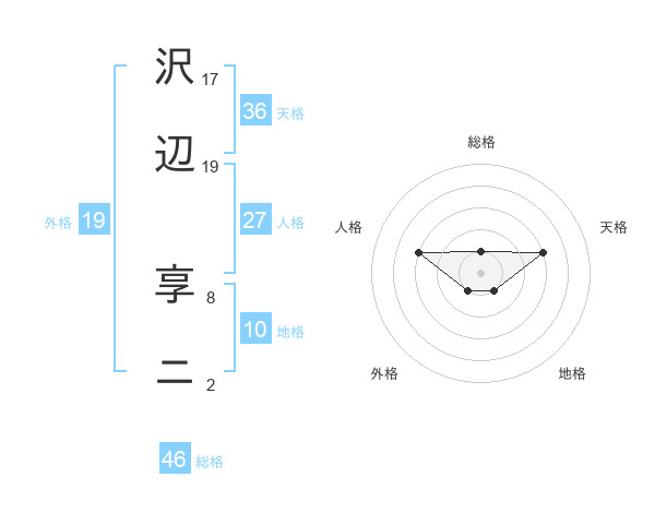 沢辺 享ニさんの天格は36画の3点!