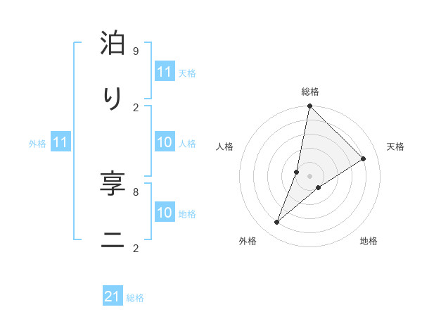 泊り 享ニさんの総格は21画の5点!