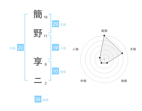 簡野 享ニさんを姓名の画数から五運を鑑定