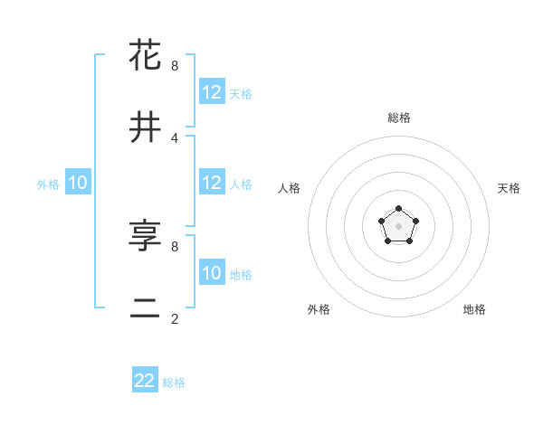 花井 享ニさんの総格は22画の1点!