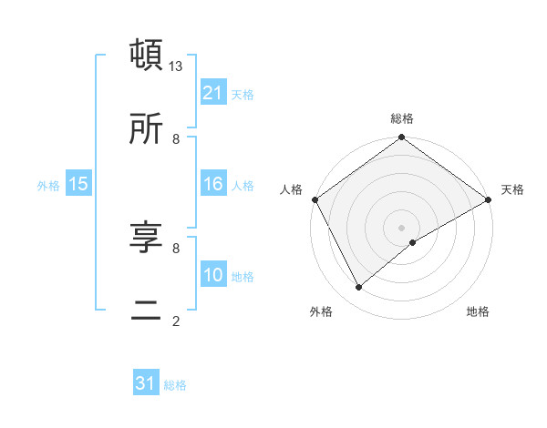 頓所 享ニさんの天格は21画の5点!