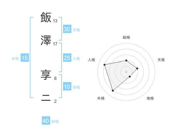 飯澤 享ニさんを姓名の画数から五運を鑑定