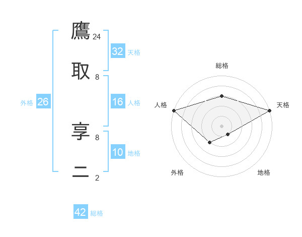 鷹取 享ニさんを姓名の画数から五運を鑑定