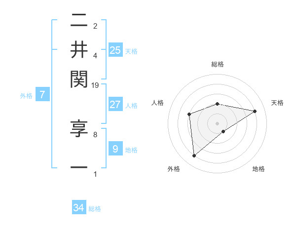 二井関 享一さんの総格は34画の2点!