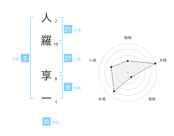 人羅 享一さんの総格は30画の2点!