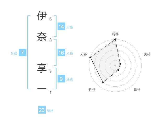 伊奈 享一さんを姓名の画数から五運を鑑定