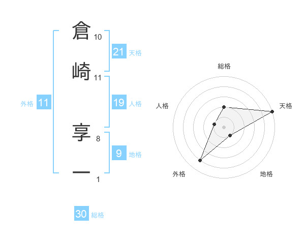 倉崎 享一さんの天格は21画の5点!