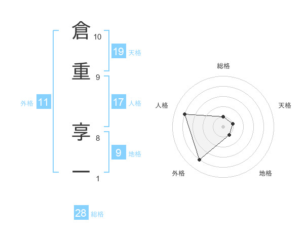 倉重 享一さんの天格は19画の1点!