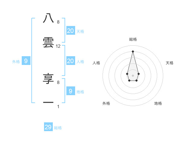八雲 享一さんの総格は29画の4点!