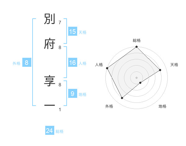 別府 享一さんの総格は24画の5点!