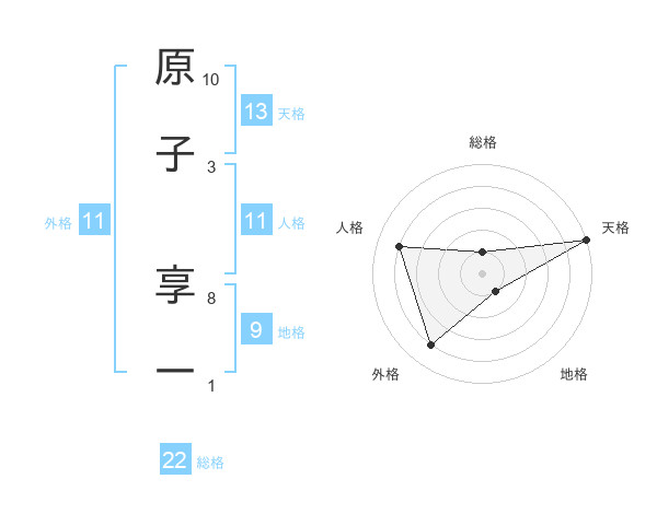 原子 享一さんの総格は22画の1点!