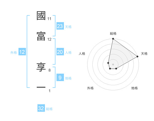 國富 享一さんの総格は32画の5点!