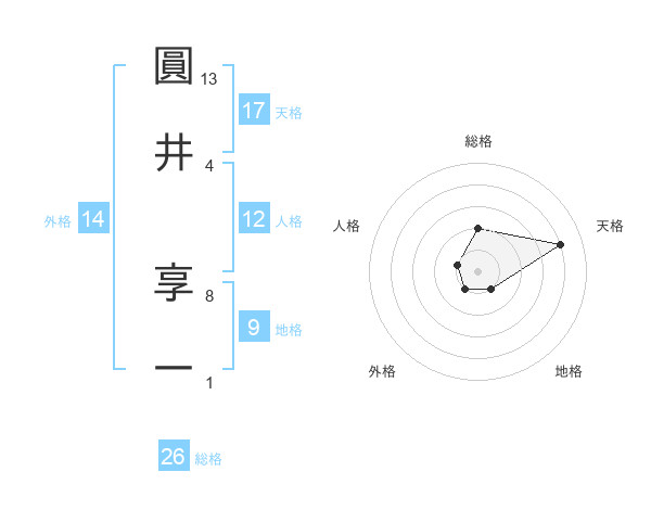 圓井 享一さんの天格は17画の4点!