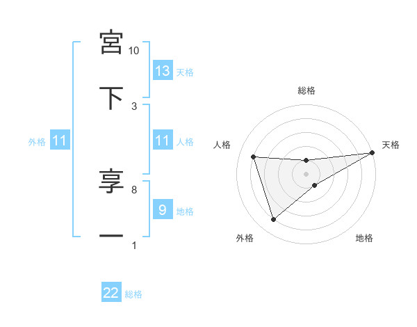 宮下 享一さんの総格は22画の1点!